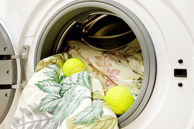If you’d rather not use tennis balls for any reason, wool dryer balls are another excellent option. Though they’re lighter and thus lack the force of tennis balls — meaning they’re less effective at pounding down jackets and comforters back into shape — wool dryer balls can help reduce wrinkles and static electricity. They’ll also work to separate tangled clothing and cut down drying time. As a bonus, this means lower energy bills each month, as you’ll end up running the dryer for shorter periods.