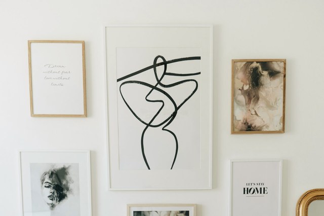 No matter where your gallery wall is — an entryway, a hallway, a living room — it’ll become a focal point, so be sure to include pieces that are meaningful to you. Big-box store art is convenient and affordable, but can feel stale if it’s not complemented by more personal pieces.